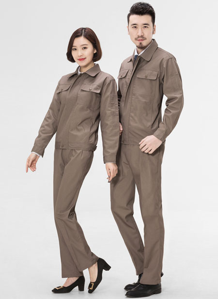 卡其色長袖夾克工作服訂做款式模板圖