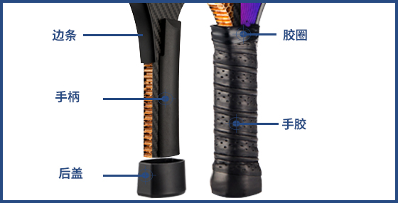 其他部件也是球拍的非常重要的組成部分。如果這部分是您喜歡的,并且質(zhì)量優(yōu)良,它將避免您在比賽中出現(xiàn)尷尬的情況。如果您對邊框保護和握把需求有特殊要求,您應(yīng)該讓我們知道。